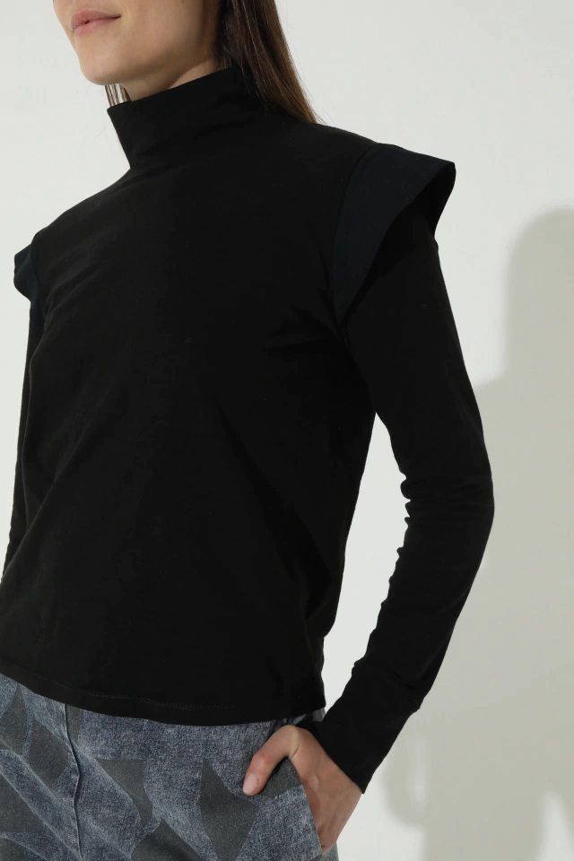 Polera confeccionada en jersey flame. Fit clásico, mangas largas , hombros marcados con medialunas de tela plana.